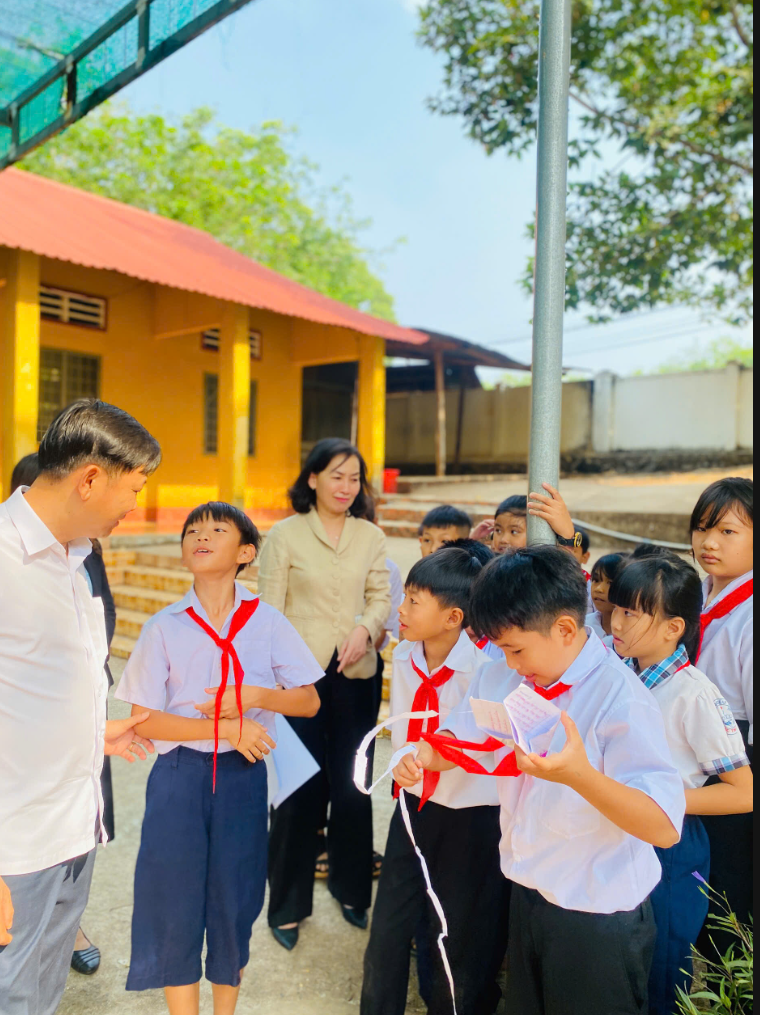 Sau khi hoàn thành việc khảo sát thực tế phương án xây dựng nhà tiền chế làm bếp ăn bán trú, lãnh đạo Sở Giáo dục và Đào tạo tỉnh Đồng Nai cùng lãnh đạo UBND xã Lộc Tấn đã có buổi gặp gỡ, trò chuyện thân mật với các em học sinh Trường Tiểu học Lộc Thiện. Tại đây, các đồng chí lãnh đạo đã ân cần thăm hỏi tình hình học tập, sinh hoạt của các em, động viên các em cố gắng chăm ngoan, học giỏi, vâng lời thầy cô và cha mẹ.