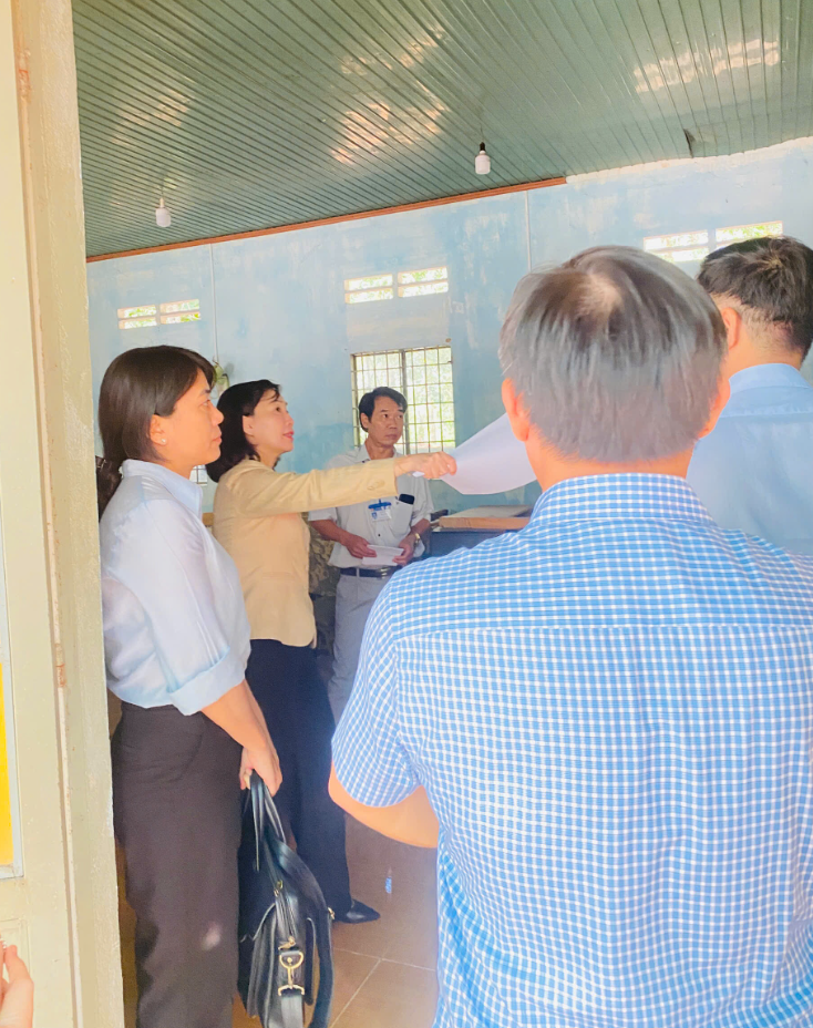 Sau khi địa phương hoàn thành việc rà soát, khảo sát hiện trạng khu vực dự kiến xây dựng. Vào lúc 8 giờ 15 phút ngày 16/4/2026, đoàn công tác của Sở Giáo dục và Đào tạo tỉnh Đồng Nai do bà Trương Thị Kim Huệ - Giám đốc Sở GD&ĐT làm trưởng đoàn, phối hợp cùng lãnh đạo UBND xã Lộc Tấn, đã tiến hành khảo sát thực tế phương án xây dựng nhà tiền chế làm bếp ăn bán trú tại Trường Tiểu học Lộc Thiện.