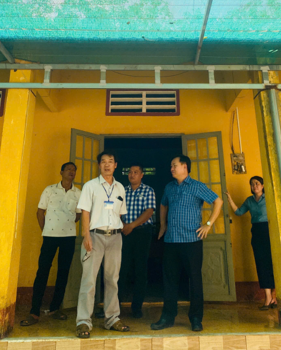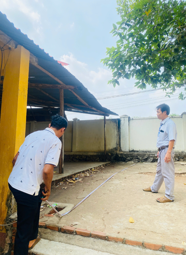 Một số hình ảnh: UBND xã Lộc Tấn khảo sát thực tế khuôn viên trường và vị trí dự kiến xây dựng nhà tiền chế phục vụ bếp ăn bán trú cho học sinh.