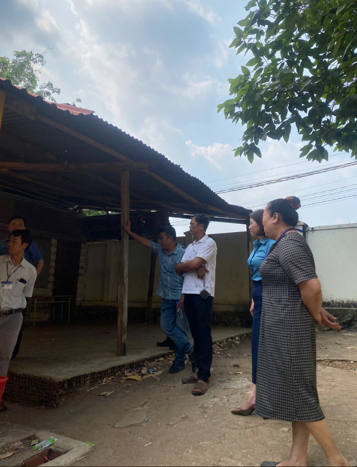 Tại buổi khảo sát, đoàn đã trực tiếp kiểm tra hiện trạng cơ sở vật chất, vị trí mặt bằng, điều kiện hạ tầng kỹ thuật và nhu cầu thực tế của nhà trường trong việc tổ chức bữa ăn trưa cho học sinh từ năm học 2026–2027. Thầy Hồ Thế Hùng, Hiệu trưởng nhà trường đã báo cáo cụ thể về số lượng học sinh có nhu cầu tham gia bán trú, điều kiện phòng học hiện có cũng như phương án bố trí khu vực bếp nấu, khu chia suất ăn và kho lưu trữ thực phẩm, gạo.