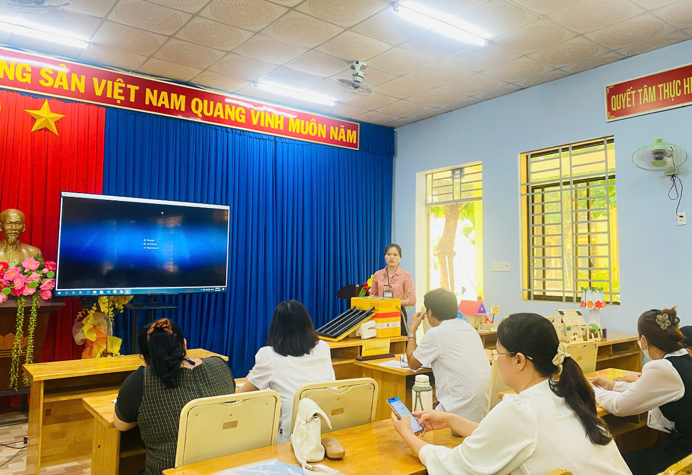 Sáng ngày 11/4/2026, Trường Tiểu học Lộc Thiện đã tổ chức chấm thi cuộc thi “Cùng em sáng tạo STEM 2026” với sự tham gia đầy đủ của Ban Giám hiệu cùng các tổ chuyên môn. Buổi chấm thi diễn ra trong không khí nghiêm túc, khách quan nhưng cũng không kém phần sôi nổi, hào hứng, thể hiện rõ tinh thần đổi mới và sáng tạo trong dạy và học của nhà trường. Cuộc thi không chỉ là sân chơi trí tuệ bổ ích mà còn là cơ hội để học sinh vận dụng kiến thức liên môn (Khoa học, Công nghệ, Kỹ thuật, Nghệ thuật và Toán học) vào thực tiễn. Ban giám khảo gồm các cán bộ quản lý và giáo viên có chuyên môn đã làm việc nghiêm túc, công tâm để đánh giá các sản phẩm dự thi