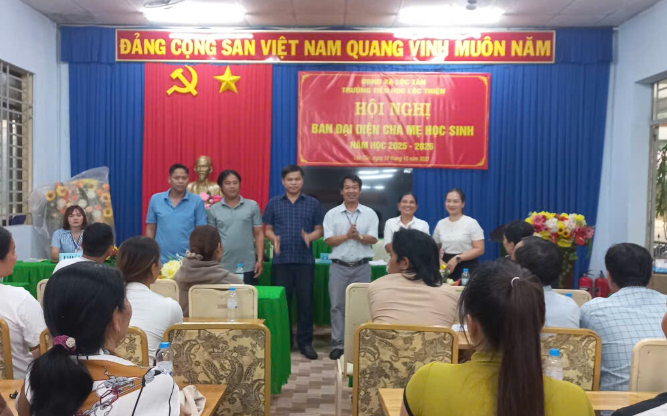 Thực hiện nhiệm vụ năm học 2025–2026, nhằm tăng cường mối quan hệ phối hợp giữa nhà trường và cha mẹ học sinh trong công tác giáo dục toàn diện cho học sinh, vào lúc 14 giờ 30 phút, ngày 10 tháng 10 năm 2025, Trường Tiểu học Lộc Thiện đã tổ chức Hội nghị Ban đại diện cha Thực hiện nhiệm vụ năm học 2025–2026.