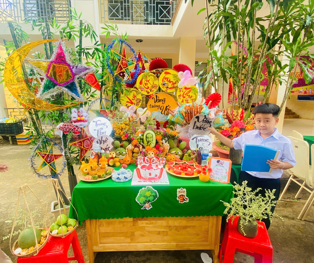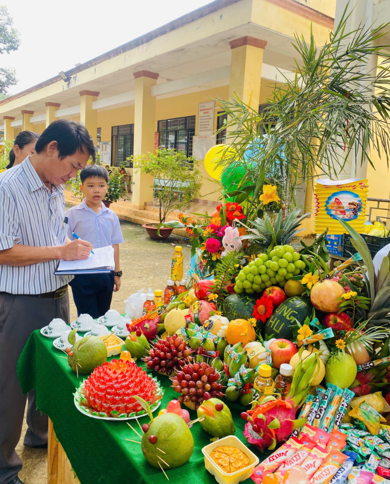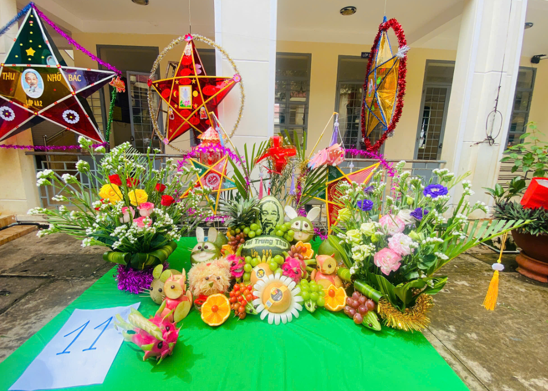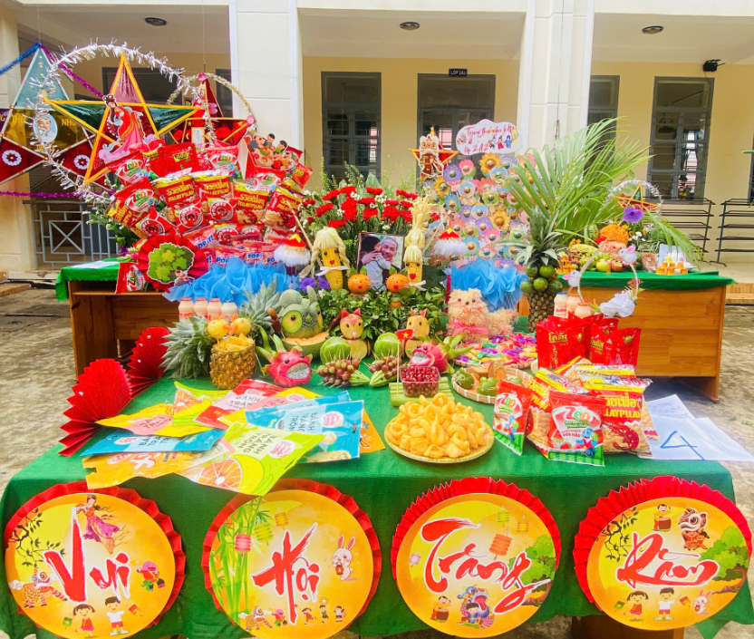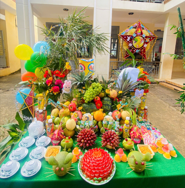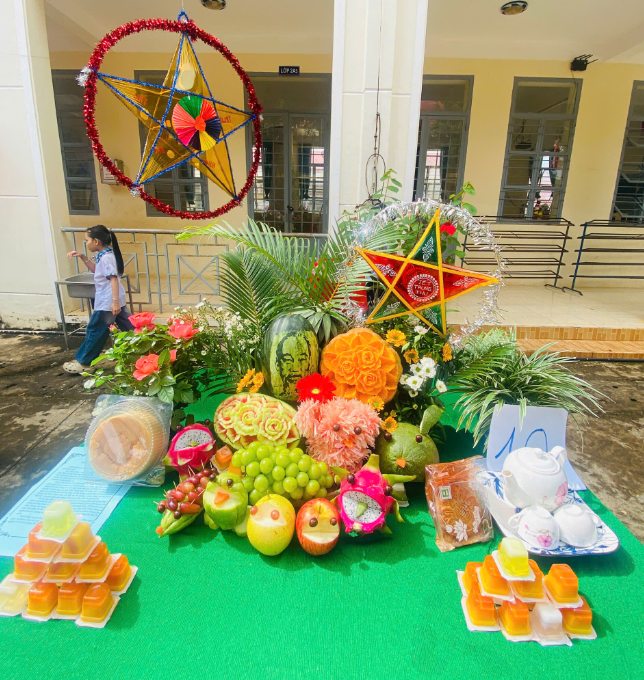 Đặc biệt, phần thi “Mâm cỗ Trung thu” năm nay được các lớp chuẩn bị công phu, sáng tạo với nhiều ý tưởng độc đáo, thể hiện tinh thần tập thể và tình yêu thương. Ban giám khảo đã lựa chọn ra được những mâm cỗ đẹp, ý nghĩa và đặc sắc trong phần thi này.