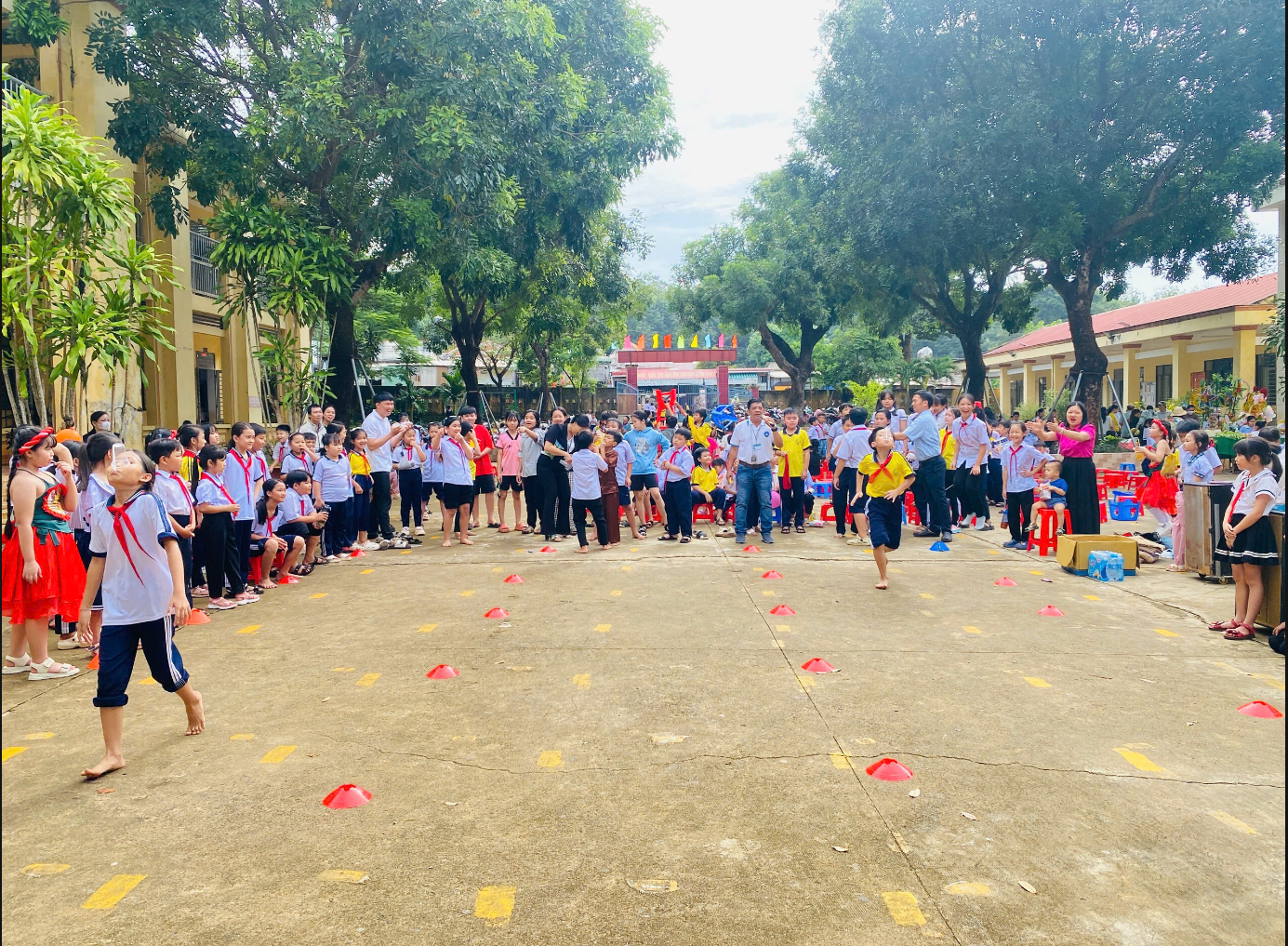 Tiếp nối chương trình là phần tổ chức các trò chơi dân gian dành cho học sinh. Các em tham gia hào hứng, đoàn kết và thể hiện tinh thần vui chơi lành mạnh, mang đậm ý nghĩa của ngày Tết thiếu nhi truyền thống.