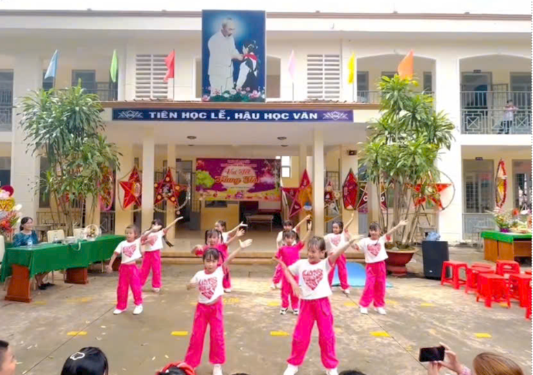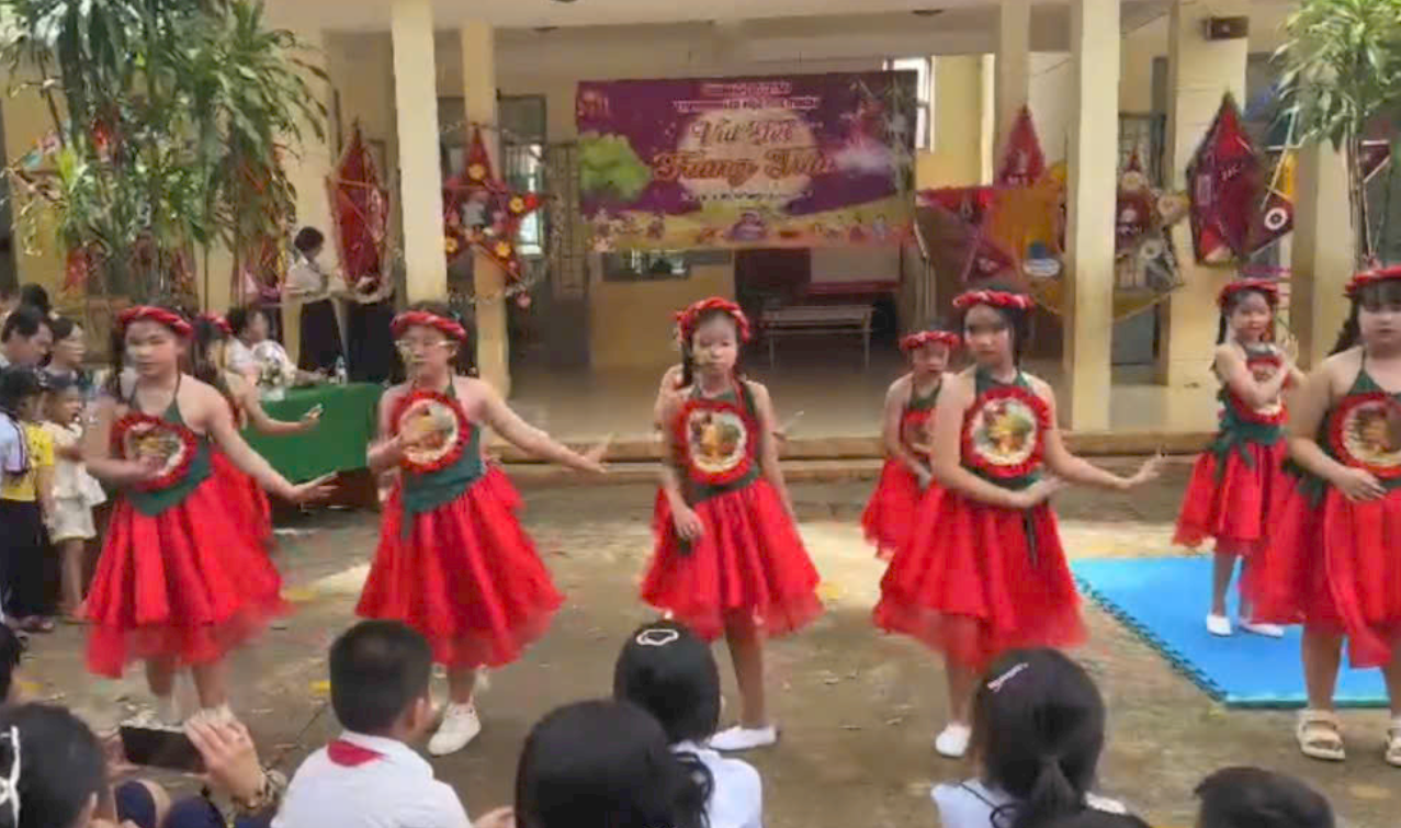 Mở đầu chương trình là phần văn nghệ chào mừng, các tiết mục múa hát về chủ đề Trung thu do học sinh các khối lớp biểu diễn đã tạo nên bầu không khí tươi vui, sôi động và đầy màu sắc. Những giai điệu quen thuộc như Chiếc đèn ông sao, Rước đèn tháng Tám vang lên rộn ràng, khiến sân trường như bừng sáng trong niềm hân hoan của ngày hội.