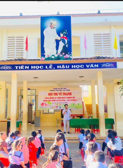 Sáng thứ Bảy, ngày 20/12/2025 Trường Tiểu học Lộc Thiện tổ chức Hội thi vẽ tranh nhằm Giáo dục học sinh truyền thống yêu nước và lòng biết ơn đối với các chiến sĩ Quân đội Nhân dân Việt Nam. Tạo sân chơi nghệ thuật bổ ích, phát huy năng khiếu hội họa và khả năng sáng tạo của học sinh. Giúp học sinh hiểu thêm về hình ảnh “Anh bộ đội Cụ Hồ”, biển đảo quê hương, tinh thần bảo vệ Tổ quốc. Thông qua hoạt động góp phần nâng cao chất lượng giáo dục toàn diện cho học sinh và tạo không khí thi đua sôi nổi chào mừng các ngày lễ lớn.