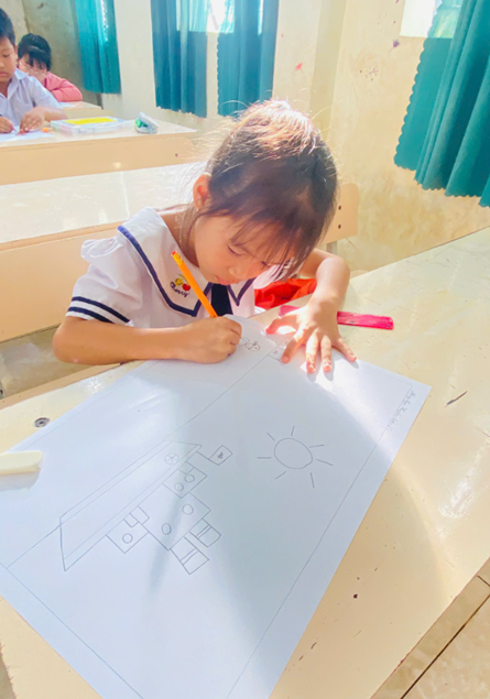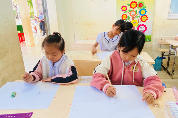 (Hình ảnh các thí sinh khối lớp 1 tham gia hội thi vẽ tranh)
