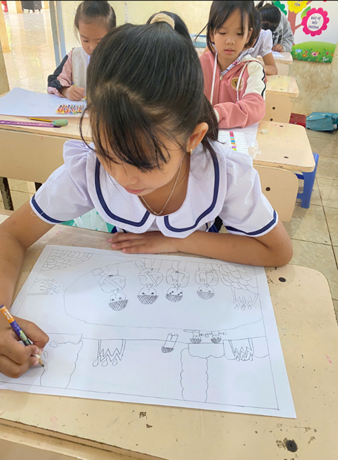 (Hình ảnh các thí sinh khối lớp 2 tham gia hội thi vẽ tranh)