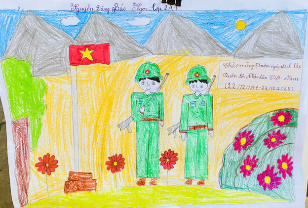 Với chủ đề hướng về hình ảnh Bộ đội Cụ Hồ, tình yêu quê hương, đất nước, biển đảo và truyền thống vẻ vang của Quân đội nhân dân Việt Nam, các tác phẩm dự thi đã thể hiện trí tưởng tượng phong phú, nét vẽ hồn nhiên nhưng giàu cảm xúc của học sinh tiểu học. Mỗi bức tranh là một câu chuyện nhỏ, gửi gắm niềm tự hào, sự biết ơn và tình cảm trong sáng của các em đối với những người lính đang ngày đêm bảo vệ Tổ quốc.