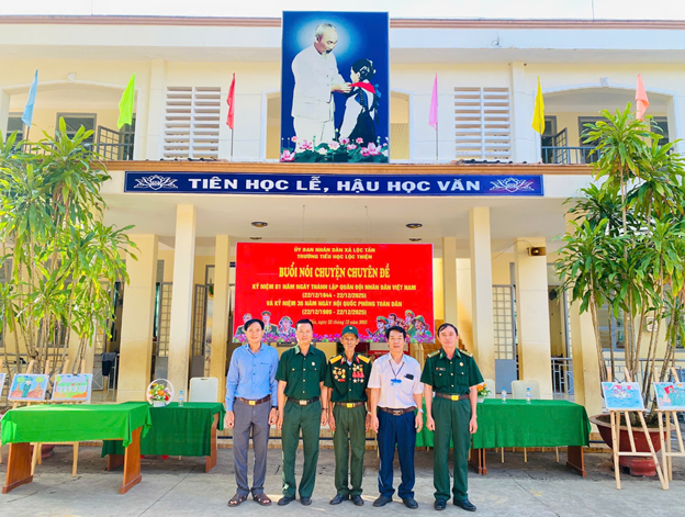 Tham dự buổi nói chuyện truyền thống, nhà trường vinh dự được đón tiếp đại diện Hội Cựu chiến binh xã, những người đã từng tham gia chiến đấu, công tác trong Quân đội nhân dân Việt Nam qua các thời kỳ cùng các đồng chí trong Ban thường vụ Đảng uỷ xã Lộc Tấn và Hội Cựu Chiến binh xã Lộc Tấn: