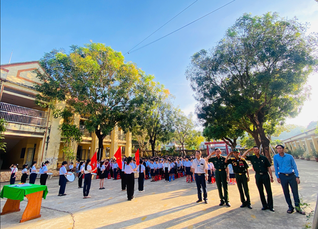 Tại buổi nói chuyện trong giờ sinh hoạt dưới cờ, lễ chào cờ được tổ chức trang nghiêm, đúng nghi thức, với sự tham gia đầy đủ của Ban Giám hiệu, cán bộ, giáo viên, nhân viên và toàn thể học sinh nhà trường. Trong không khí trang trọng, thầy và trò cùng hướng về lá cờ Tổ quốc, thể hiện niềm tự hào dân tộc và lòng biết ơn sâu sắc đối với các thế hệ cha anh đã anh dũng hy sinh vì độc lập, tự do của Tổ quốc. Đây là hoạt động có ý nghĩa giáo dục sâu sắc, góp phần nâng cao ý thức kỷ luật, bồi dưỡng truyền thống yêu nước và trách nhiệm của học sinh ngay từ những giờ sinh hoạt đầu tuần.