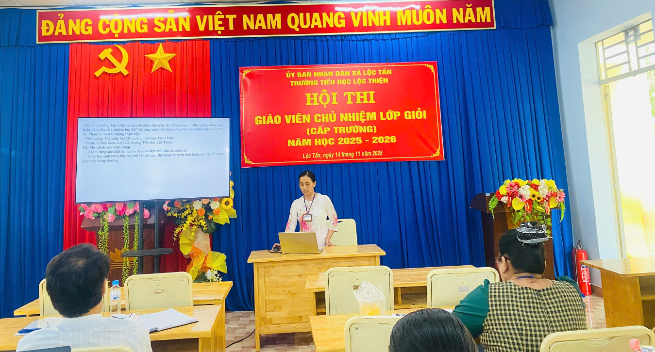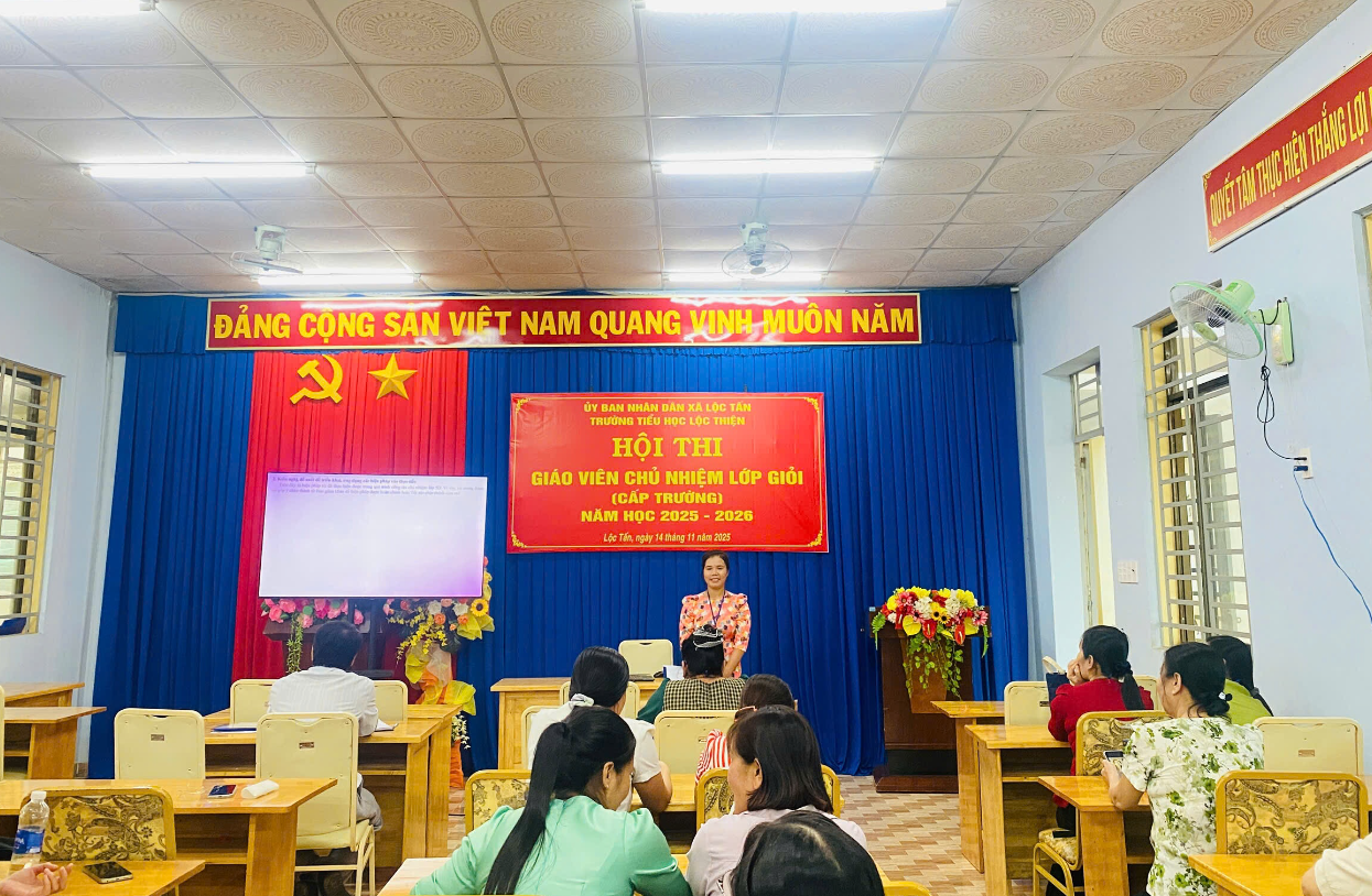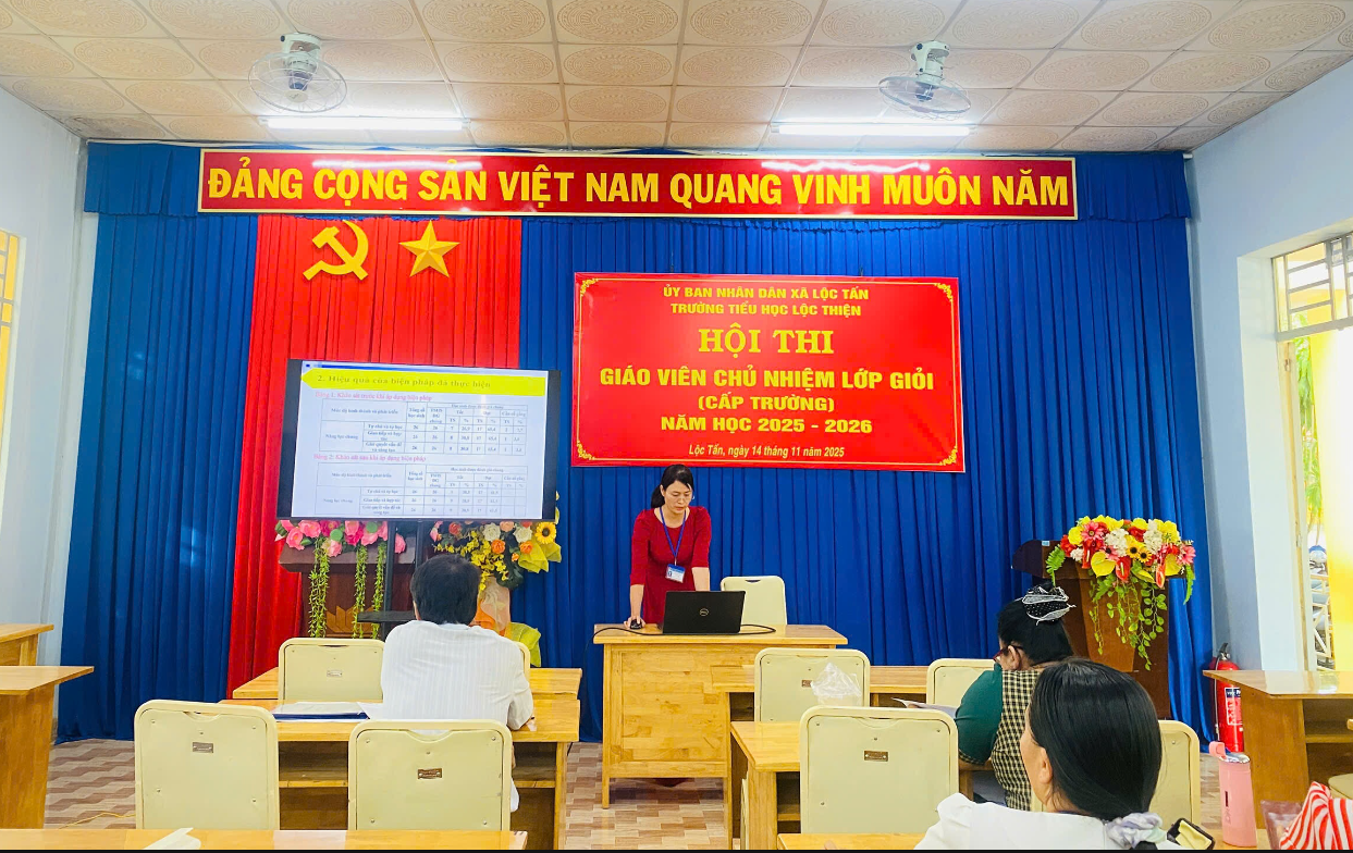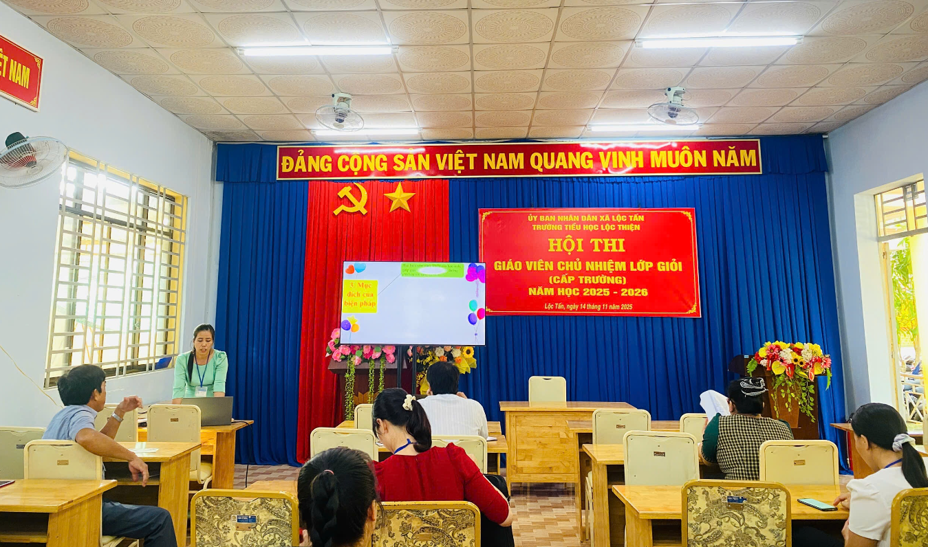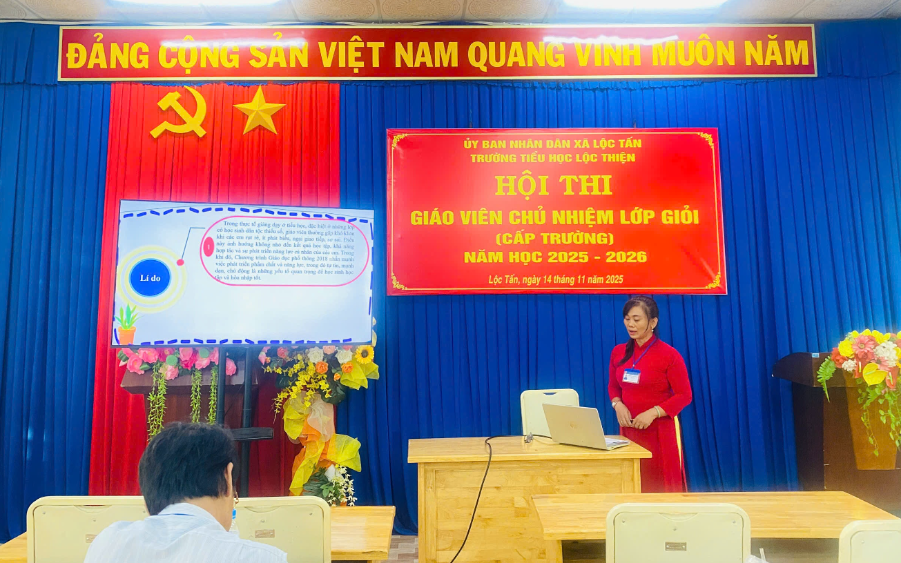 Nội dung thi: Trình bày báo cáo biện pháp của Hội thi Giáo viên Chủ nhiệm lớp giỏi năm học 2025–2026 đã diễn ra thành công tốt đẹp, góp phần khích lệ tinh thần học tập, đổi mới và nâng cao chất lượng giảng dạy tại Trường Tiểu học Lộc Thiện. Đây cũng là dịp để các giáo viên giao lưu, trao đổi kinh nghiệm, tiếp tục hoàn thiện kỹ năng, đáp ứng yêu cầu đổi mới giáo dục trong giai đoạn mới./.