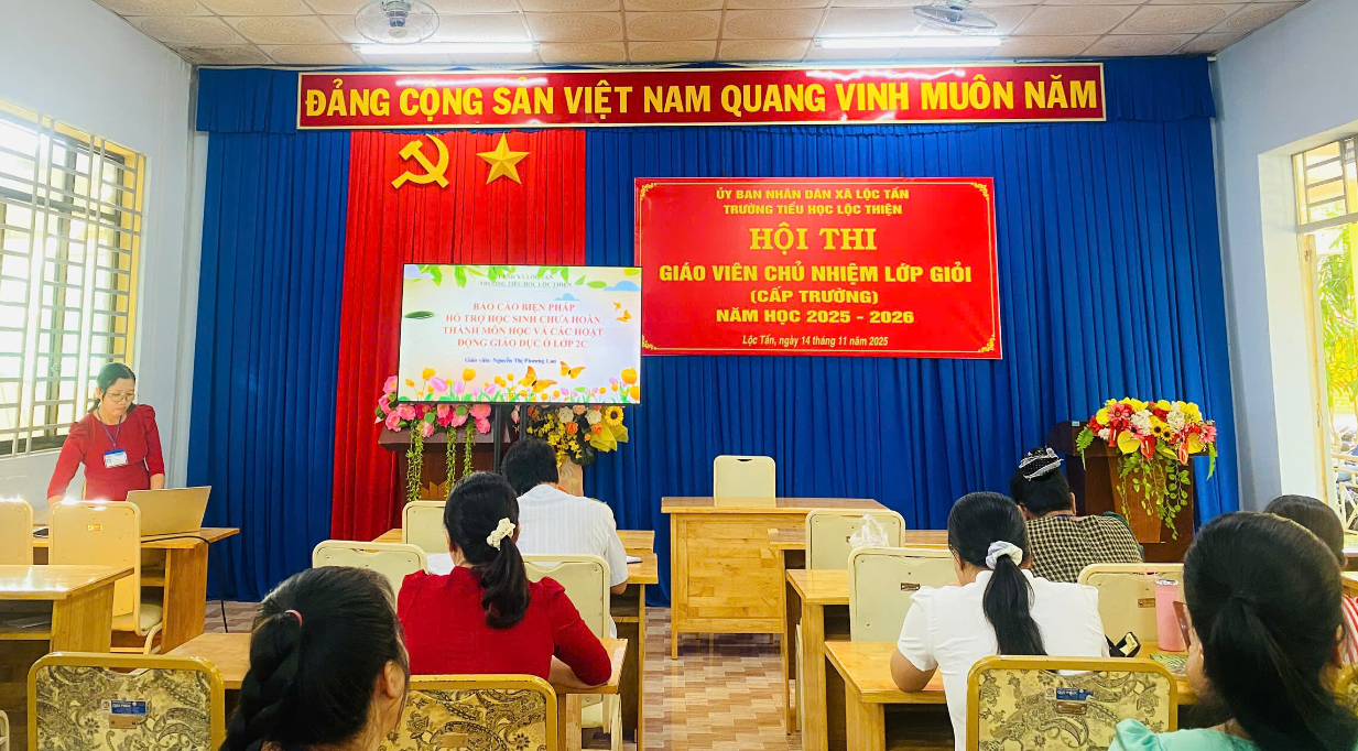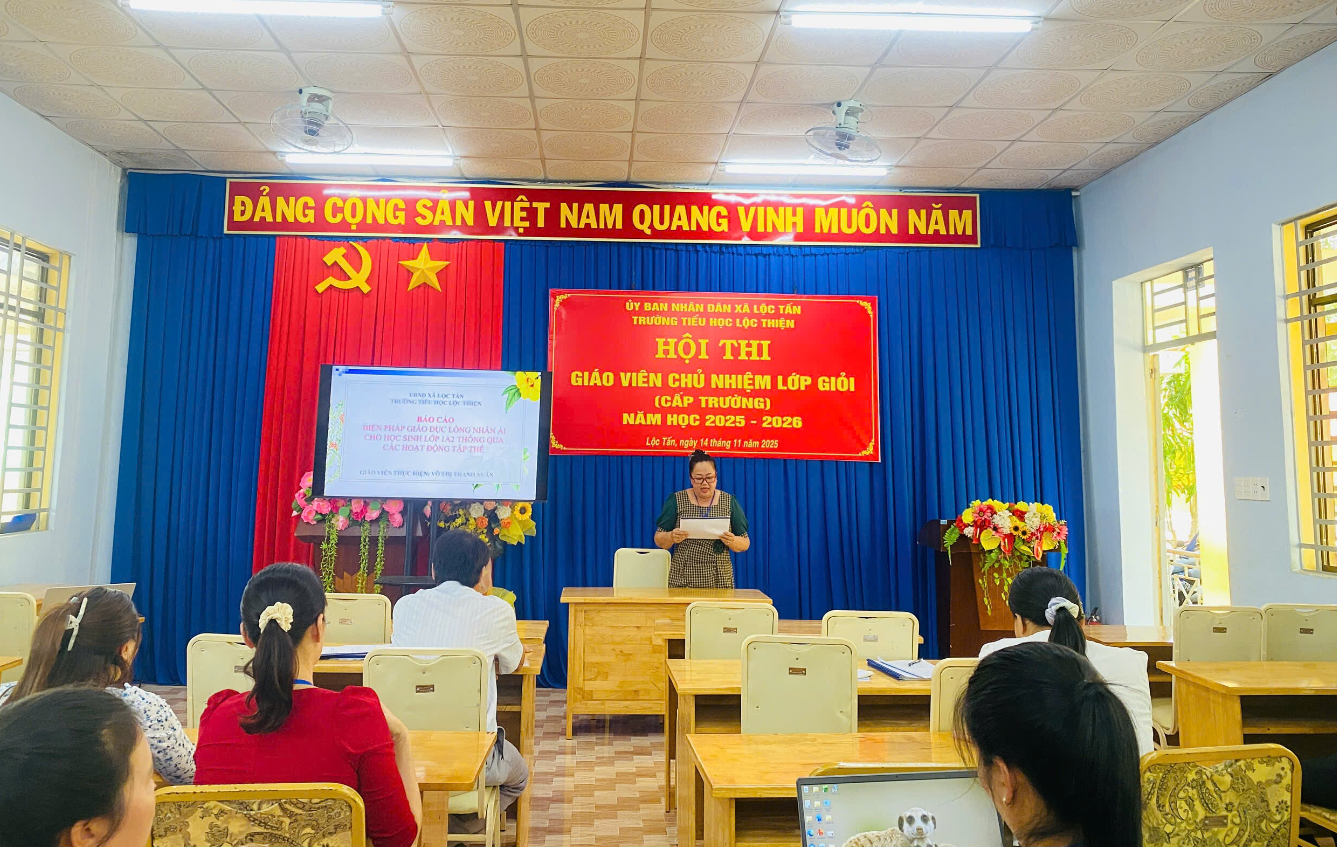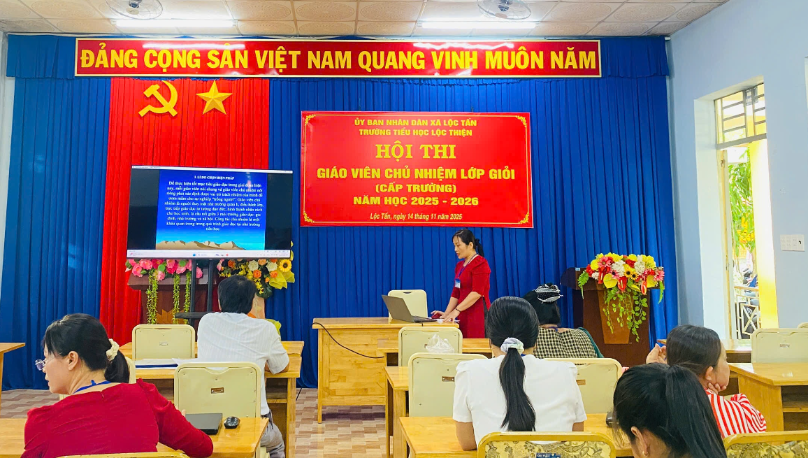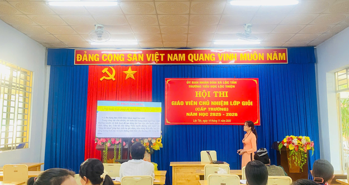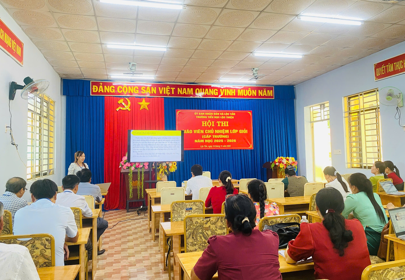 Nội dung thi: Trình bày báo cáo biện pháp của Hội thi Giáo viên Chủ nhiệm lớp giỏi năm học 2025–2026 đã diễn ra thành công tốt đẹp, góp phần khích lệ tinh thần học tập, đổi mới và nâng cao chất lượng giảng dạy tại Trường Tiểu học Lộc Thiện. Đây cũng là dịp để các giáo viên giao lưu, trao đổi kinh nghiệm, tiếp tục hoàn thiện kỹ năng, đáp ứng yêu cầu đổi mới giáo dục trong giai đoạn mới./.